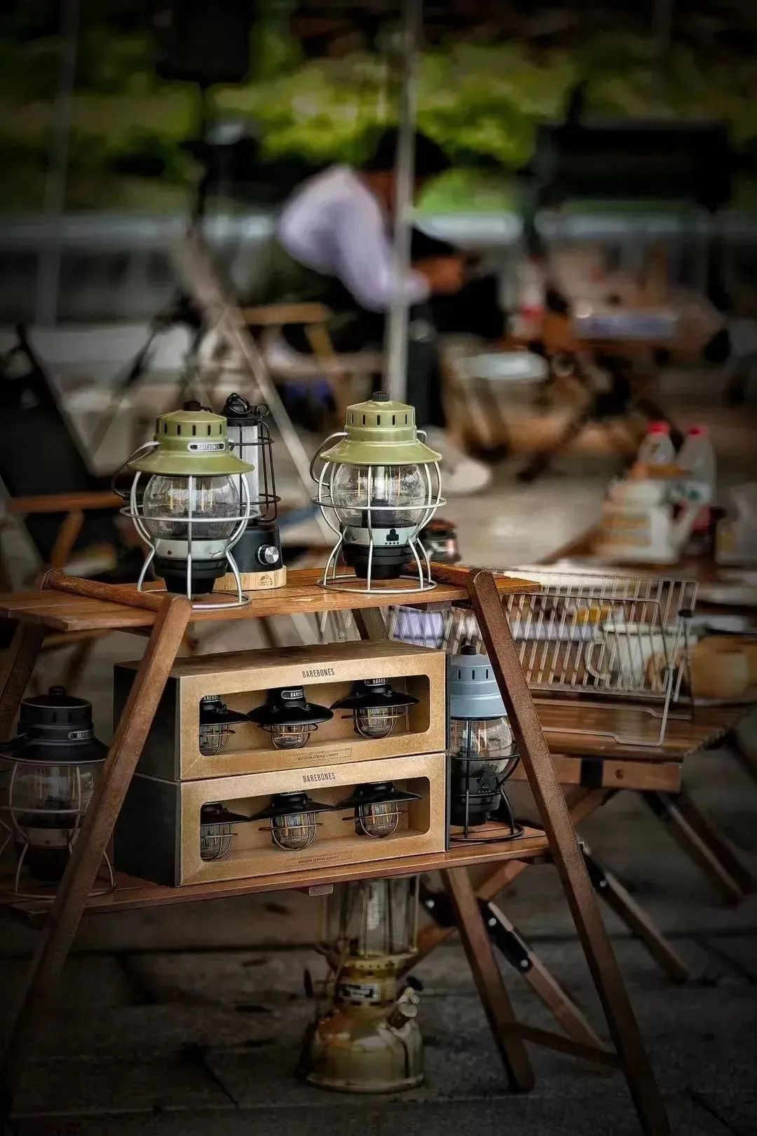 帐篷灯、营地灯、氛围灯、手电筒、帐篷串灯是夜晚的气氛神器。如果有条件的话,可以选择汽灯,相较起LED灯,它更能营造出温馨的氛围,在秋冬时期使用还能取暖。