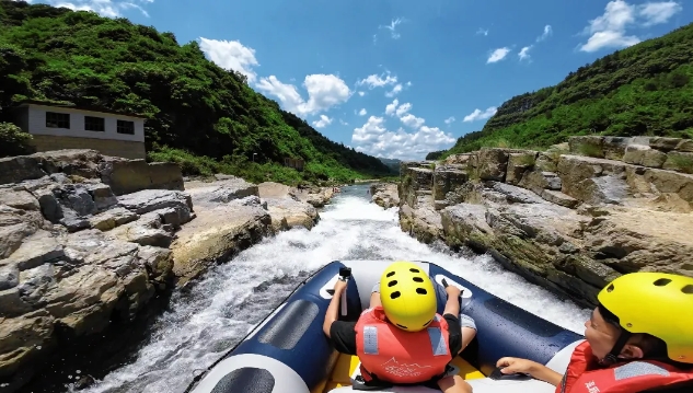 游玩前第一件事是仔细阅读漂流须知,听从工作人员的安排,穿好救生衣,找到安全绳;漂流船通过险滩时要听从工作人员的指挥,不要随便乱动,应紧抓安全绳,收紧双脚,身体向船体中央倾斜;若遇翻船,不用慌张,漂流都会穿有救生衣,可助您脱险。
