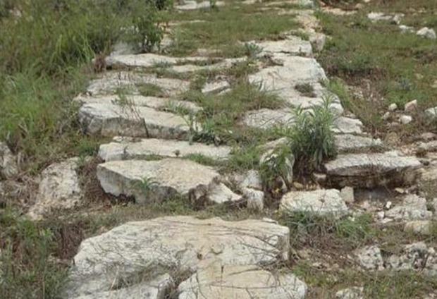史书记载,花江河流域曾经是古夜郎中心地之一。因其历史悠久,文物古迹颇丰。修建于秦汉时期的古道,曾经是京城长安,经黔地入云南边疆的官道。该道路径崎岖,单是爬上花江大坡,就要折折回回的绕行九十九道拐。常年军队、商贾、百姓,过往不断。早先,古道分为两条,一条在干二盘,一条在法郎。以后修建了花江铁索桥,干二盘这条走的人就少了。现今,已被雨浸风蚀而变得落寞与苍楚的石级古道,依然忽隐忽现地起伏在这崇山峻岭、悬崖绝壁上,仿佛在默默述说着无限的沧桑。