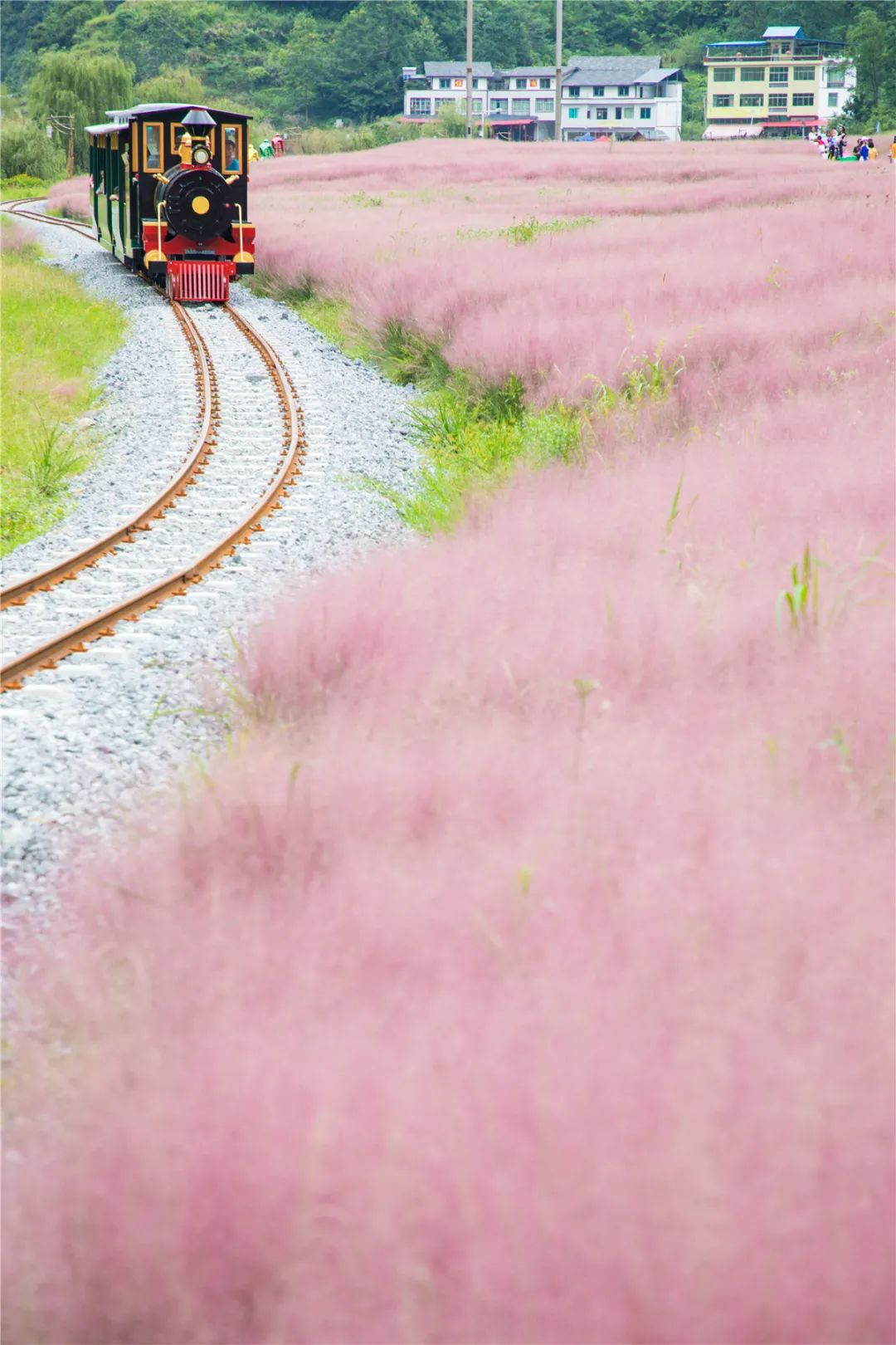 在神泉谷观赏浪漫粉黛,一定要乘坐网红小火车遨游其中。当呜呜呜的鸣笛声响起,火车就跟着轨道缓缓而行,两旁是柔美至极芬芳粉色,体验感五星!
