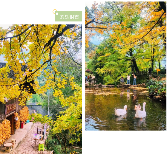 一到秋天,这片银杏林就如同仙境,而隐秘在金黄树叶中的村寨,愈发显得宁静古朴。来这里,可以看村里的老人在门前悠然闲聊,感受最纯粹的田园生活。