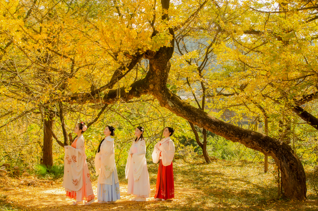 赏银杏的方式多种多样,可以身着汉服,穿梭在银杏树下,留下最美的身姿,在一阵快门声中,把秋天逮住,装在照片里,氛围浓,够大片!