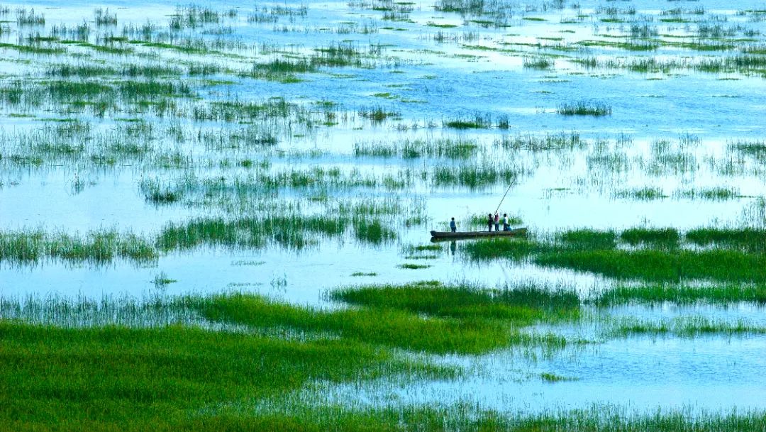 “草海泛舟天上走,绿波深处荡悠悠。”
