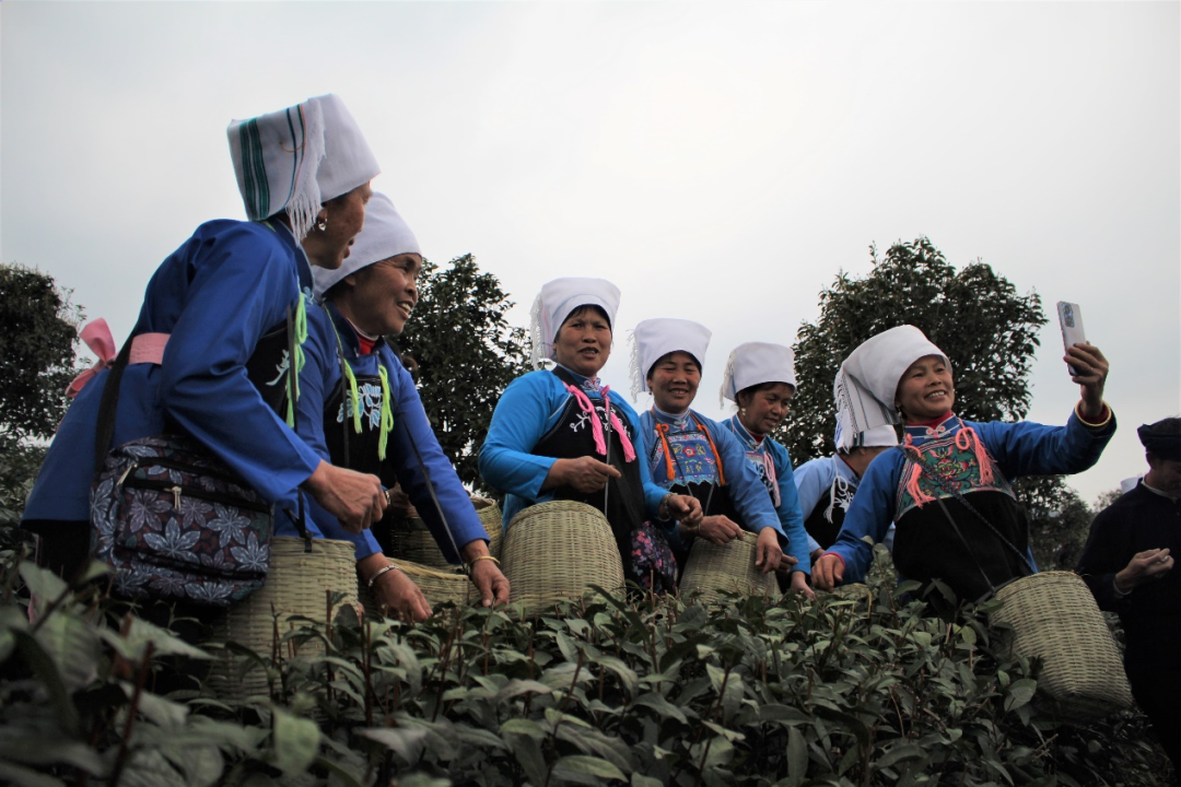 春茶采摘后的喜悦自拍