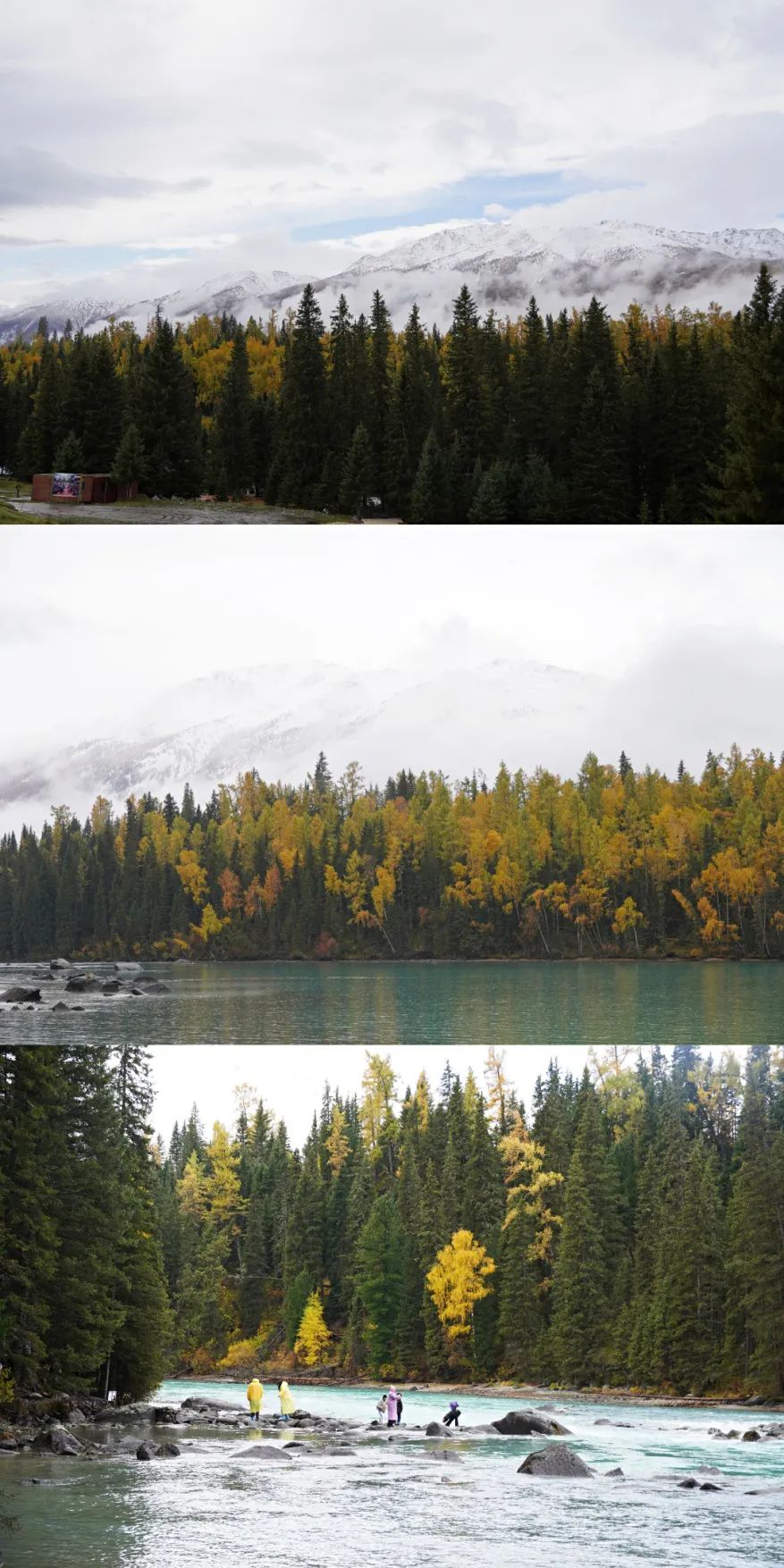 写这篇稿子的时候,正逢喀纳斯景区持续降雪,道路被封,困在喀纳斯的朋友发来视频,厚厚的积雪一脚踩下去深不见底,从窗户跳下去直直扎进雪堆,白茫茫的世界里,偶见远山的轮廓和水墨勾勒般的白桦林,实在让南方人羡慕。