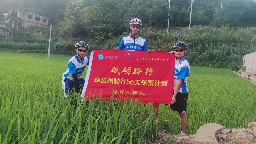 有一种岁月叫青春,有一种激情叫骑行。7月16日,以我为队长的黔程似锦车队从贵州大学出发,与队友夏抵健(中国地质大学2022级研究生,本科就读于贵州大学体育学院)和包小样(贵州大学2022级研究生,本科就读于温州大学生科院)一起踏上名为“砥砺黔行——环贵州骑行探索计划(献礼贵州大学建校120周年)”的贵州山地户外之旅,开启了我们独特的暑假生活。原本此次计划为环贵州骑行50天的探索计划,但由于研究生开学时间提前,故我们在骑行时间上作了适当调整。