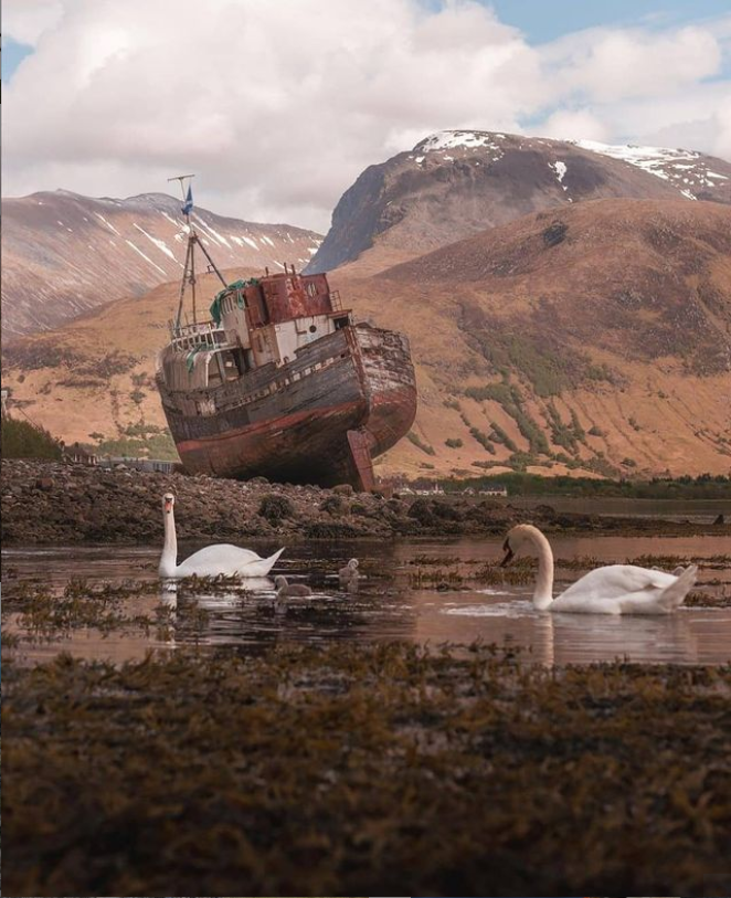 本尼维斯山脚下还有一个网红打卡点,一艘名为科尔的古船(the old boat of Caol),屹立在这座高峰下,随手一拍就是大片,也因此吸引了许多摄影爱好者。
