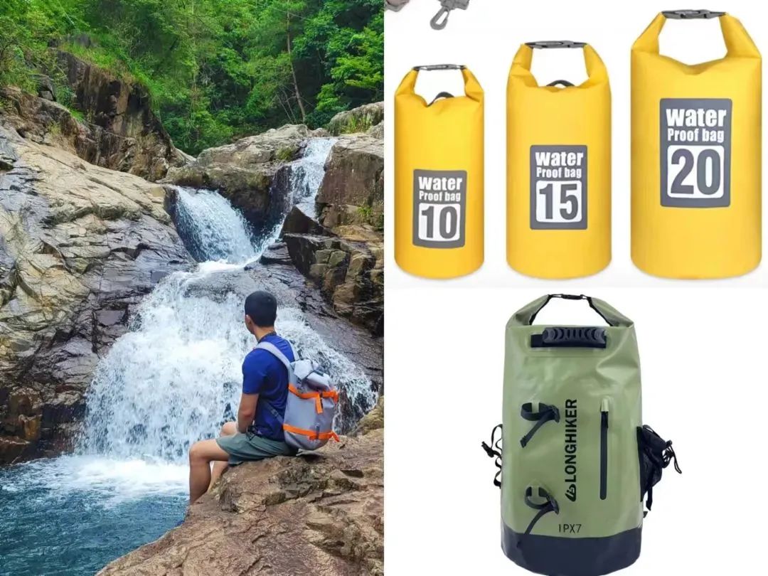 走溯溪路线时,建议配置防水背包。使用防水背包,能够大大提升溯溪的乐趣,不用因为担心背包落水而总是“飞檐走壁”绕行水潭。