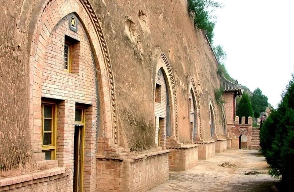 靠崖式窑洞:依山而建,常见于山坡沟畔。陕西榆林南部靠崖窑通过巧妙设计窑脸(立面),在有限空间内最大化采光与通风,门洞高窗形成空气对流系统