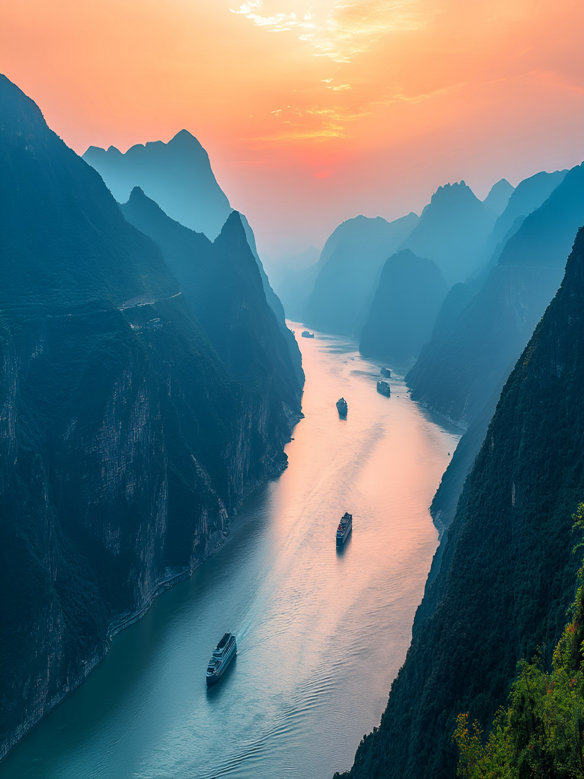 俯瞰哈当厄尔峡湾,人们会发现峡湾两岸高耸的雪山,相互对峙,如果这时有一叶扁舟从此过,人们便会发现这份“山与水的默契”如此熟悉,有了一丝东方的山水韵味在其中。郦道元在《水经注》中写下“自三峡七百里中,两岸连山,略无阙处”,恰如哈当厄尔峡湾“两山夹水,一叶扁舟从此过”的格局。瞿塘峡虽无雪山,却有巫山十二峰的陡峭岩壁,赤甲山与白盐山隔江对峙,岩壁如刀削斧凿,船行其间,仿佛被群山环抱,只剩头顶一线天空,这份“壮阔感”与哈当厄尔峡湾的“雪山对峙”异曲同工。更妙的是“水”的呼应:哈当厄尔峡湾的瀑布群,在瞿塘峡化作了“悬泉瀑布,飞漱其间”的景致。
