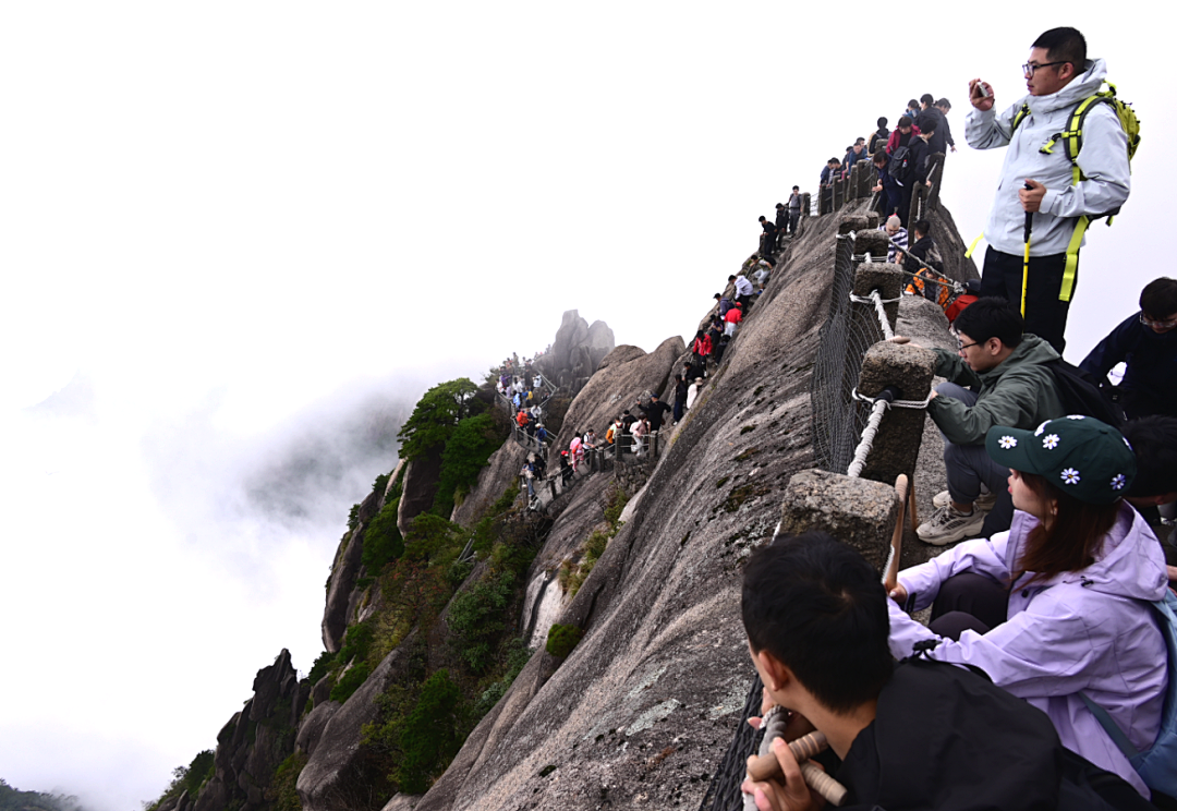 近乎垂直的登山道由岩石凿成,手抓着铁链向上时,能摸到岩壁上粗糙的纹理;还有两侧皆是悬崖的山路,堵在队伍里时,低头就能看见脚下翻滚的云海。可当终于站在山顶,所有怨言都会被眼前的风景冲散,只剩一句发自肺腑的“好美”。
