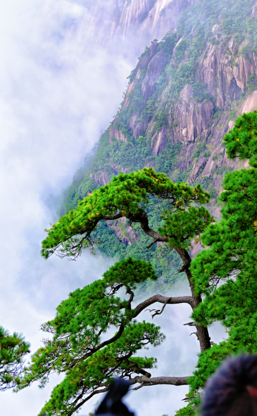而黄山松偏有股倔强脾气,硬是顺着花岗岩的裂缝扎根,根系像细密的网扎进石缝深处汲取水分,才在这险峻崖壁上撑起一片绿。