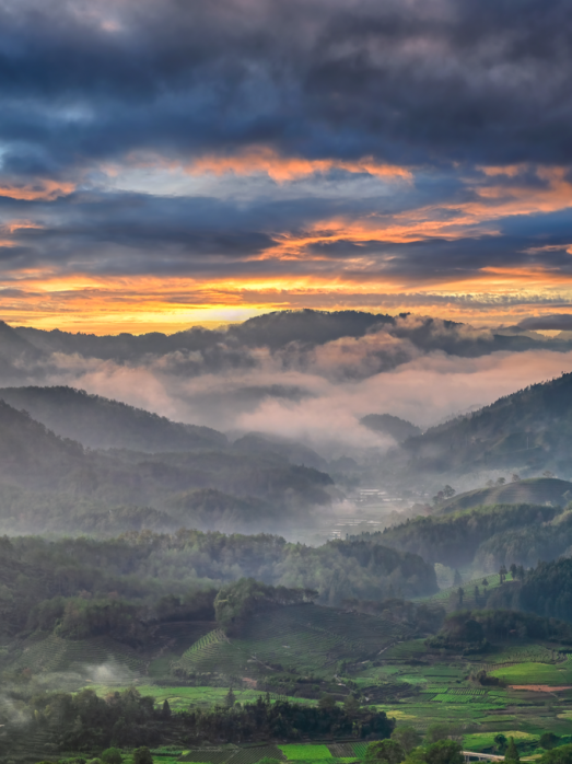 福建的地形,是被大山“主导”的格局:全境以山地丘陵为主体,可分为三级阶梯,而其中两级都被连绵群山牢牢占据。第一级阶梯的“天然屏障”,是武夷山脉。它北连浙江仙霞岭,南接赣粤九连山,蜿蜒500余公里(有550公里与530公里两种说法),平均海拔超千米,既是闽赣两省的水系分界线,也孕育了东南沿海最高峰——海拔2158米的黄岗山,雄峙于武夷山市境内,守护着福建的西北门户。