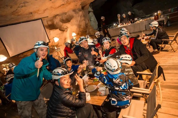 朱晓倩:猴耳天坑极限酷玩公园是山地体育旅游的经典代表,除了这个,我们还打造了荔波酷玩森林项目。荔波是地球上的最后一条绿腰带,酷玩森林集原始森林徒步、洞穴探险、洞穴火锅、洞穴露营、洞穴电影、探洞等为一体。客人在这里可以带上头灯化身为探险家看钟乳石的发育,看洞穴通过海洋冲刷形成留下的化石,体验暗河玻璃船拍摄出圈的大片,体验溜索、跳楼机等项目,再来一杯最野的悬崖咖啡,当然还有我们的极致露营、瀑降、轻探险、深度体验等活动。