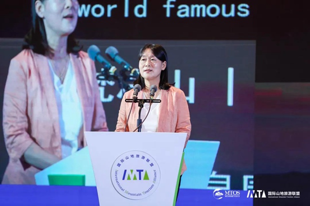 贵州省文化和旅游厅副厅长李芳在2021世界名山(梵净山)对话“议题二:名山伴名泉,名泉必康养——论道山地温泉康养旅游新境界”环节发表了题为“打造山地温泉康养旅游新名片”的主旨演讲。