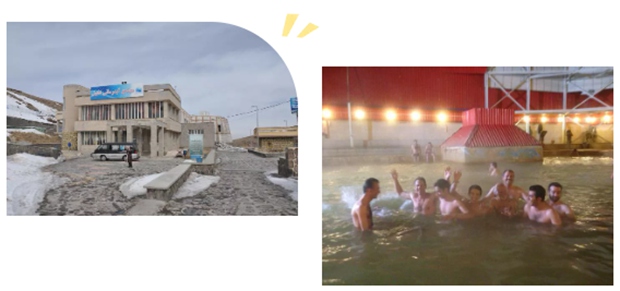 伊朗很多地方也有温泉。有个叫Sharbil的地方,是在山上。有温泉泡池,还有4&4u:2103的降温池,你可以在冷热之间来回,做交替疗法,这让人精力充沛,对健康很有益。