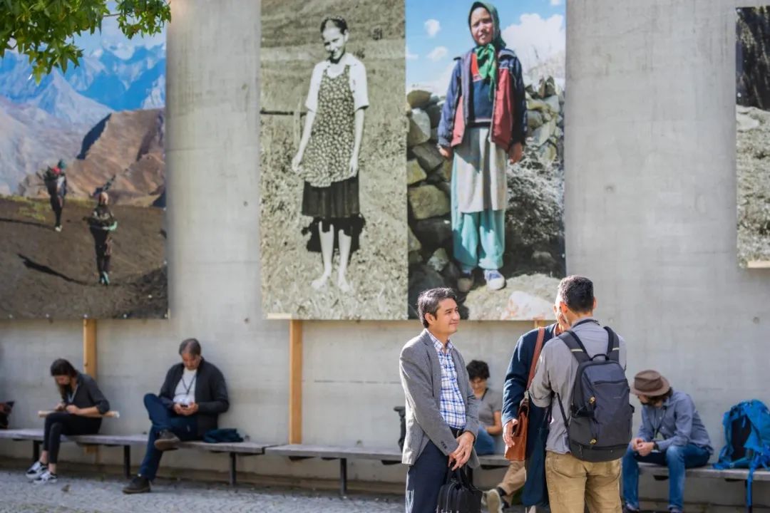 会场布置最震撼的是高悬的几十幅巨型摄影作品,视觉效果冲击力极强。著名奥地利山地女摄影家 Erika Hubatschek博士,在60多年里捕捉了阿尔卑斯山农业的全貌,作品感染力极强。她的女儿继续传播其作品,策划了本次展览,主题是阿尔卑斯山和喜马拉雅山的农业女性。醒目的巨幅作品,时刻提醒着过往人们不忘初心。