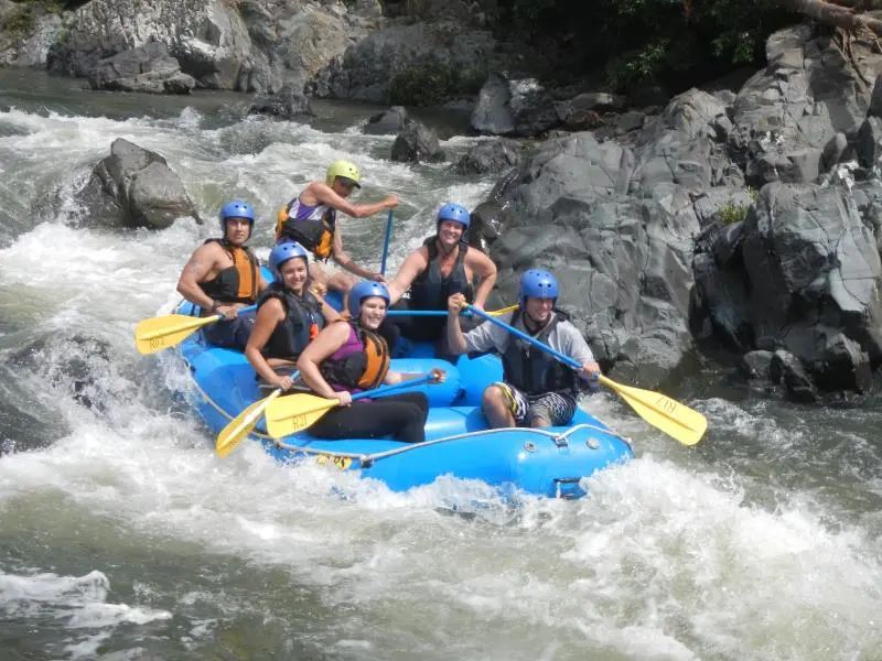 哈威尔的一日游惊喜不断。直升飞机先带我们飞越国家公园上空,降落在上游河滩后,7艘漂流船齐下查河!漂流难度3级,局部水流湍急,两岸山高陡峭,吼猴(Howler Monkey)叫声不断。突然间暴雨降临,雷鸣闪电天昏地暗,我们全身湿透,雨水汗水洗面,领教着大自然的威力,屏住气慢慢划行…… 事后大家有同感:在暴雨中漂流,洗净身心酣畅淋漓,十分爽心!