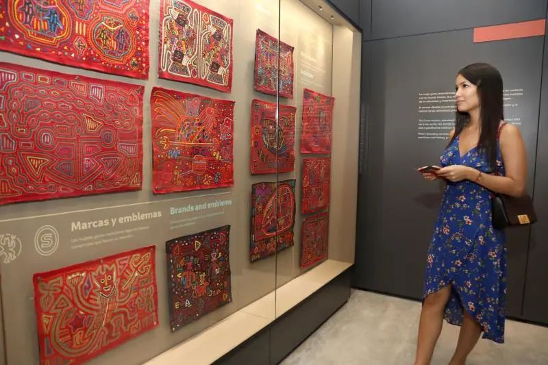 “莫拉刺绣博物馆” (Museo de la Mola) 在疫情中诞生。莫拉是巴拿马土著库那族(Guna)的一种传统工艺,由2至13层彩色布料镂空绣制而成,用于女式上衣胸腹片。馆内有展品约300件,史料详实,展示了其发展脉络:从对称到打破平衡,从线条到人物动物,从双色到13色,色彩越多,布层越多工艺越难,故事也越复杂。博物馆用300平米的小空间,讲述了库那艺术的大故事。
