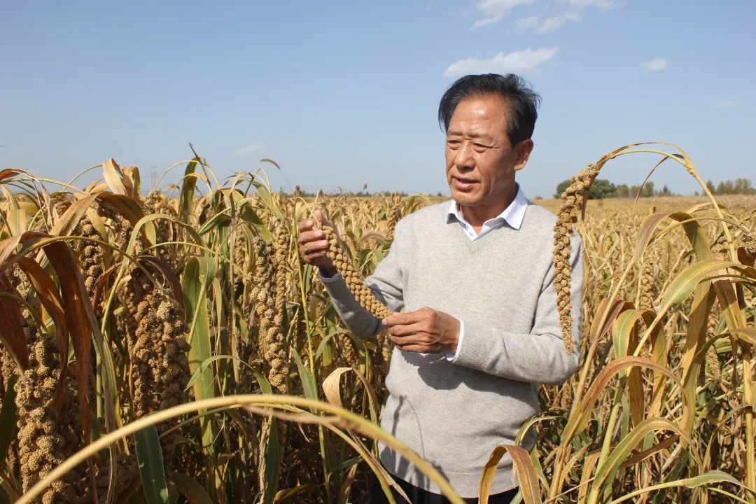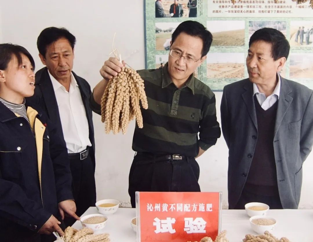 “国家谷子高粱产业技术体系”首席科学家刁现民(中)在沁县进行技术指导