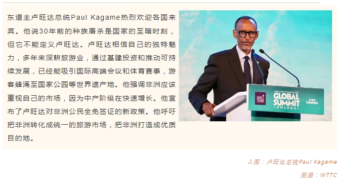 世界旅游旅行业理事会(WTTC)2023年全球峰会于11月初在非洲卢旺达首都基加利举行,主题为“构建通向可持续未来的桥梁”。约50个国家的1200多位嘉宾出席,解析当前旅游业的一些关键挑战,寻求答案。WTTC最新的《经济影响力》报告预测:未来10年,旅游业将为非洲贡献1,680亿美元。峰会带领旅游巨头企业走进非洲,感受一个融冰之初的巨大市场,为非洲旅游业的崛起助力喝彩。