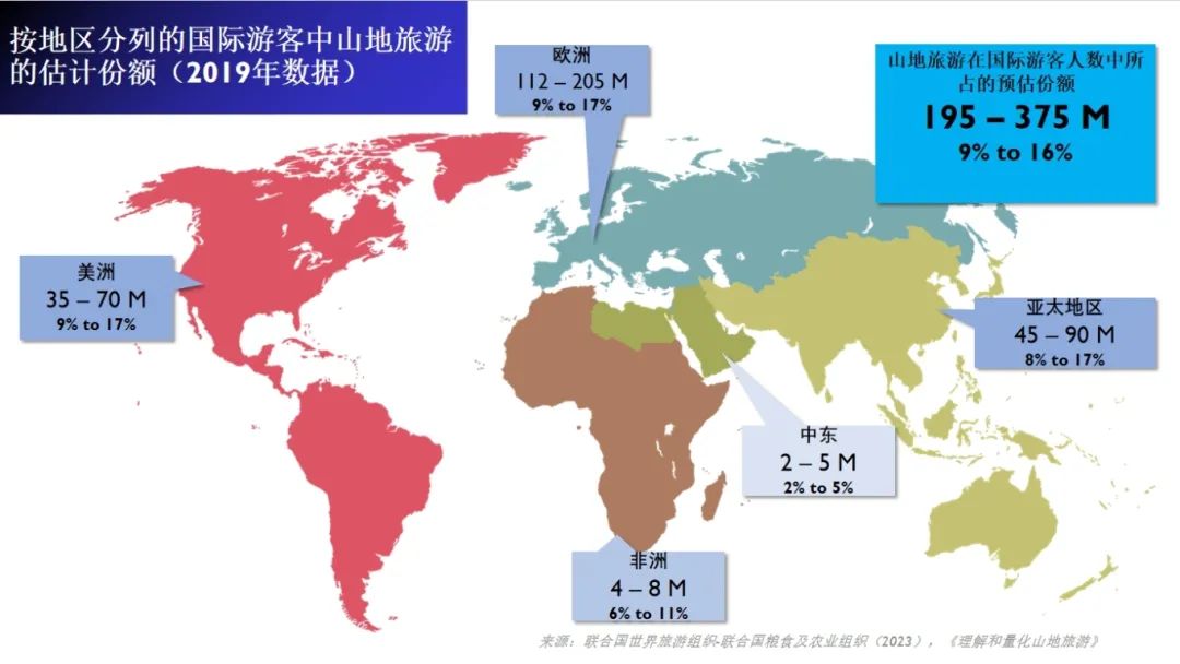 按地区分列的国际游客中山地旅游的估计份额