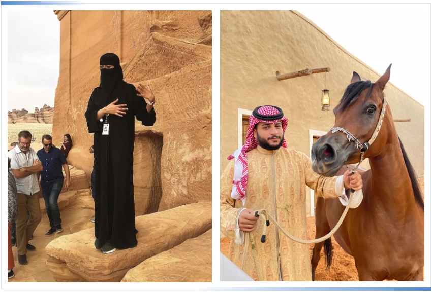 (左)沙特阿拉伯世界遗产埃尔奥拉的女解说员。图源:刘毓娜