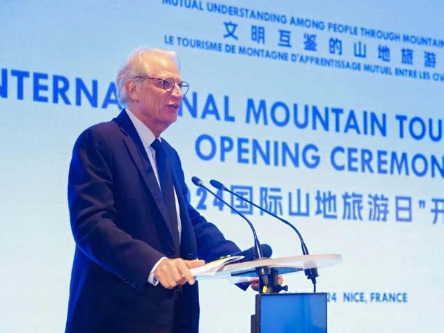 联盟主席米尼克·德维尔潘在法国尼斯举行的2024年“国际山地旅游日”活动上致辞