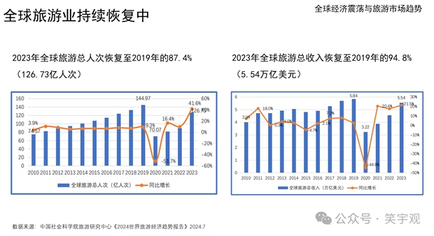 然而我们依然比较乐观,为什么?根据《2024世界旅游经济趋势报告》数据显示,2023年全球旅游收入已经恢复至2019年的94.8%高于旅游人次87.4%恢复情况,旅游消费已全面复苏。根据世界旅游组织(UNWTO)预测,今年,亚洲市场的入境旅游恢复是全球最好的,能达到2019年的80%,超过其他四大洲。同时,相比较其他国家,中国入境旅游市场比较小,整个入境旅游收入占GDP比约为0.5%左右,小于美国的1%和法国、意大利的2%,中国入境游市场潜力广阔。