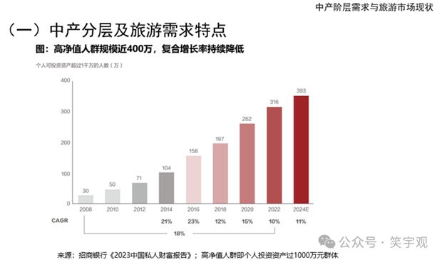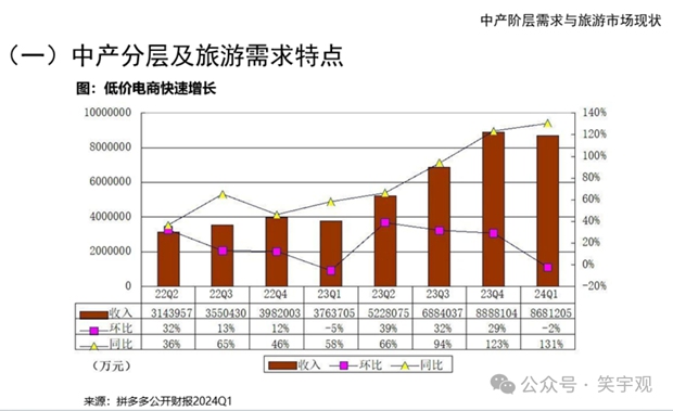 日本曾经发生中产分化,M型社会现象,即高净值人口增加,大众群体增加,中产分化及边缘化。中国也在经历这一M型社会过程,这点从招行私行数据高净值人群近14年的年复合增长率超过18%,以及拼多多财报同比130%增长就能一窥究竟。这必然导致几个趋势,第一是各阶层消费都关注性价比与基础品质;第二,精神文化产品成为重要内容,因为后工业化、城市化进程加速,导致了心灵重塑与内容消费需求增加;第三,细分型、多元化的体育旅游等主题体验产品受关注。