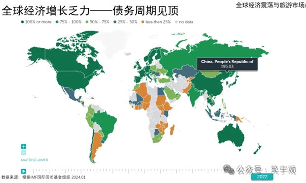 根据国际货币基金组织的预测数据显示,2024年,中国的GDP增速为4.2%左右,美国为1.2%,日本为1%。换句话说,中国虽然现在面临着转型爬坡等等挑战,但是我们的经济增速在全球来讲还是比较靠前的。但目前整个中国的私人及企业债务占GDP比例是比较高,美国是150%,日本是120%,而中国是195%。换言之,我国的企业市场融资渠道和家庭消费潜力目前是比较紧张的。