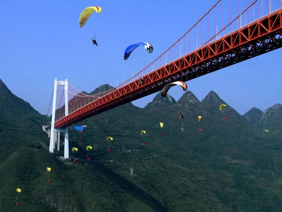 畅游多彩贵州,体验释放活力、康养健体的愉悦与乐趣。宜人的气候、秀丽的风光、高差悬殊的山形、险峻多样的地貌,激发着跃动的活力,让贵州成为极限运动和户外运动的首选地。这里是名副其实的“桥梁博物馆”。世界前100座高桥有近一半在贵州。依托全省桥梁资源,贵州持续探索“桥旅融合”新业态,打造桥旅融合示范区,解锁大桥花式新玩法,激发文旅新动力。坝陵河大桥开启了贵州“桥旅融合”的先河,是体验高空蹦极和“桥梁研学”的最佳选择;兼具景色观赏与天文观测的“天空之桥”平塘特大桥,是极具浪漫的交旅融合理想去处;龙里河大桥成为世界首座车行道与玻璃观光步道共桥面的峡谷景观大桥。这里是实至名归的“户外运动天堂”。贵州是首批国家体育旅游示范区。“奔跑贵州”山地跑系列赛、“多彩贵州”自行车联赛、“水韵贵州”水上运动系列赛、“激情贵州”汽摩系列赛、“翱翔贵州”滑翔伞比赛等系列赛事,把体育活动打造成“流动的景点”“移动的景区”。在赛场奔驰,去天际翱翔,徒步、攀岩、探洞、越野,总有适合您的选择。这里是不断“出圈”的时尚潮流聚集地。贵州悬崖咖啡、景区元宇宙、洞穴音乐节等“新玩法”不断出圈。兼顾传统与时尚、满足不同类型“爱乐之人”的路边音乐会,让您尽情释放多巴胺;贵州“村BA”、“村超”,把世界风行的足球、篮球运动与当地独特的民族文化相结合,形成了千亿级流量奇观。