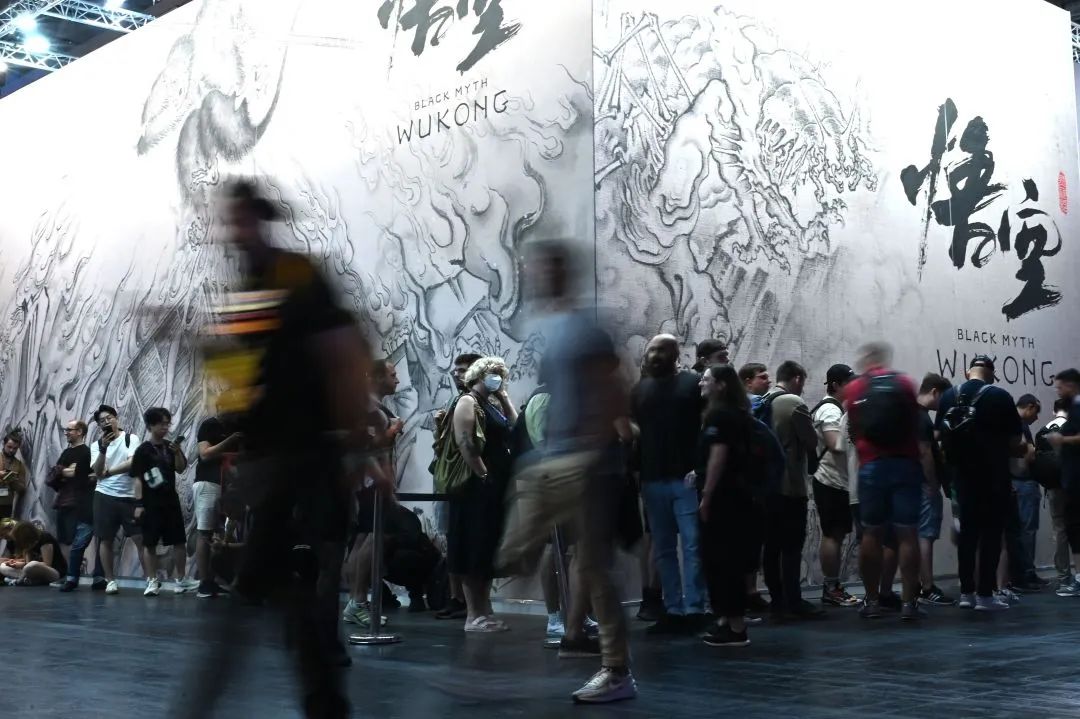 德国科隆国际游戏展,玩家在游戏科学展台前排队试玩