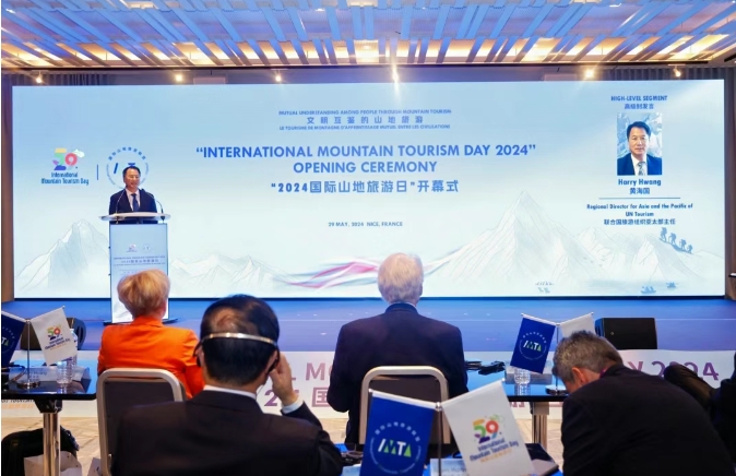 2024“国际山地旅游日”主题活动上,联合国旅游组织(UN Tourism)亚太部主任黄海国(Harry Hwang)作高级别发言