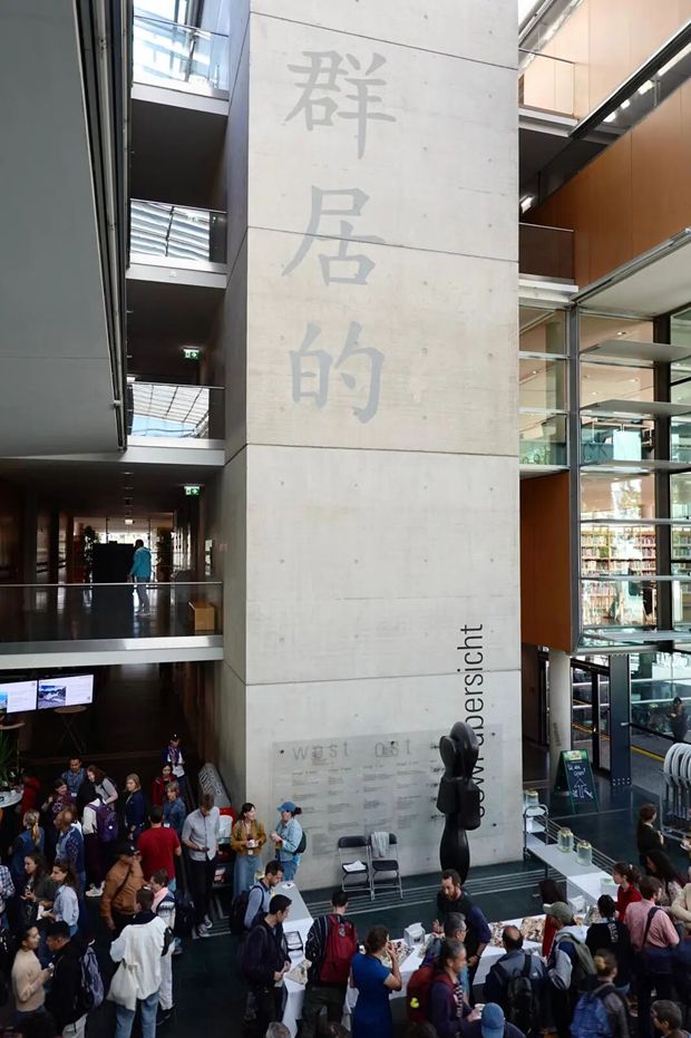 IMC会议楼墙上镌刻着汉字 “群居的” 图源: Haybina Hao