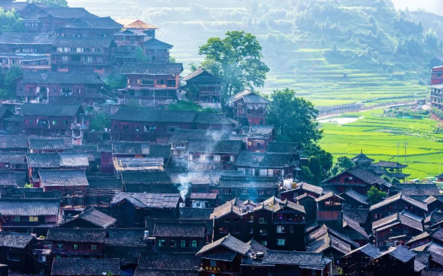 诸如贵州的西江千户苗寨,位于贵州黔东南苗族侗族自治州雷山县东北部的雷公山麓,由12个依山而建的自然村寨连片组成,是目前国内最大的苗族聚居村,约有2000余年历史,苗族农耕、服饰、饮食、歌舞娱乐、民族节日等民俗文化风情汇聚于此,传承至今。