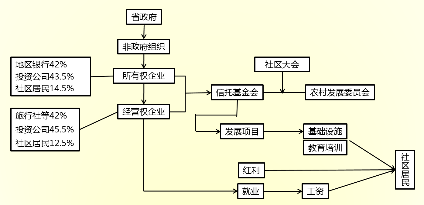 ·巴塔哥尼亚地区国家公园的社区合作模式:以最具代表性的国家公园为例,说明生态+人文类度假目的地的开发模板。公园相关的企业分为所有权和经营权两种属性。国内旅游投资公司作为两类企业的第一大股东,但不具有控股权,以限制其出于逐利目的的盲目开发。地区银行和旅行社分别作为两类企业的第二大股东,间接代表原住社区的利益。社区居民则少量参股,持有旅馆所有权和经营权的双重股份,以增加直接收益渠道。设立社区大会及信托基金会和农村发展委员会,规范旅游收益的分配与使用。