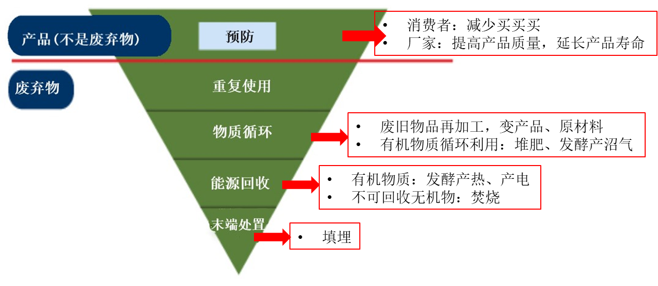 欧盟基于循环经济原则,在2008年颁布的废弃物准则中制定了废弃物5R分级管理。用一句话大致概括就是:物尽其用后再烧再埋。