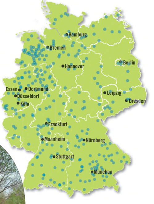 图3:德国以有机生活垃圾为来源的沼气厂分布