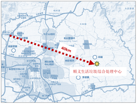 图5:北京顺义区赵全营镇到区生活垃圾处理中心的距离
