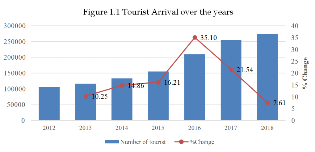 目前,GCAP承担自然资源管理的全部责任,特别是森林管理、非木材林产品监管、旅游推广和遏制非法野生动物犯罪。除了以保护为重点的活动外,它还进行中小型社区发展和推广可替代能源,这有助于森林使用者、保护农民和整个地方社区的利益。在2019财政年度结束时,已取得85。47%的整体进展。2018年尼泊尔旅游业实现总收入为2407亿卢比,提供就业岗位105万个,对该国GDP的贡献达到7。9%。GCA自成立以来,游客人数呈逐年上升趋势。
