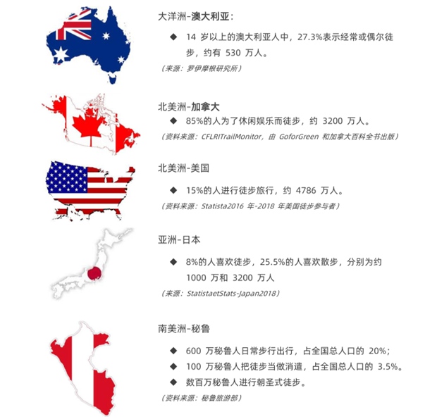 从全球范围来看,一个国家的“人类发展指数”越高(人类发展指数是指涵盖国民健康/寿命、 教育水平、生活水平,包括人均国内生产总值在内的综合指标),当地居民就越倾向于加入休闲及运动式活动,例如徒步。
