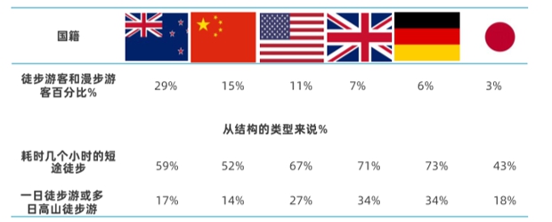 短距离徒步深受新西兰旅游各大主要市场欢迎,长距离徒步备受德国和英国游客青睐。