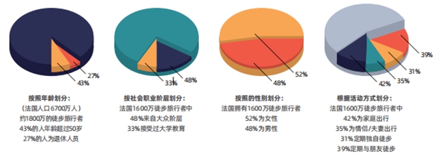 根据社会人口统计学标准对法国徒步旅行者进行分类: