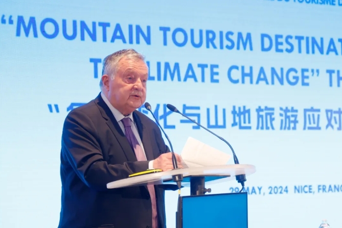 “气候变化与山地旅游应对之策”主题论坛是本次活动的重要议题,聚集了来自法国、中国和有关国家在气候变化与可持续旅游研究权威领域的顶级专家,其理念、观点、策略及解决方案引发国际广泛关注。联合国世界旅游组织荣誉秘书长、国际山地旅游联盟资深理事弗朗西斯科·弗朗加利(Francesco Frangialli)主持论坛,世界旅游及旅行业理事会前主席、联合国世界旅游组织前助理秘书长杰弗里·利普曼(Geoffrey Lipman),日内瓦大学社会科学学院前院长伯纳德·德巴尔比厄(Bernard Debarbieux ),秘鲁前旅游与文化部长罗赫尔斯·马丁·巴伦西亚·埃斯皮诺萨(Rogers Martin Valencia Espinosa),中国旅游研究院战略研究所所长吴普,联合国旅游组织旅游市场情报、政策与竞争部高级项目官员米歇尔·胡利安(Michel Julian),法国上阿尔卑斯省议会议员帕斯卡尔·博耶(Pascale Boyer),法国滑雪俱乐部主席亚历山大·莫林(Alexandre Maulin),法国国民议会山地研究小组负责人泽维尔·罗森(Xavier Roseren),旅游业未来负责任解决方案国际专家、旅游促进和平国际联合会全球大使菲利普·弗朗索瓦(Philippe Francois)等就气候变化下的山地旅游发展建言献策,共同探寻应对气候变化的对策和可持续山地旅游发展路径,提供了极富价值的建设性解决方案。
