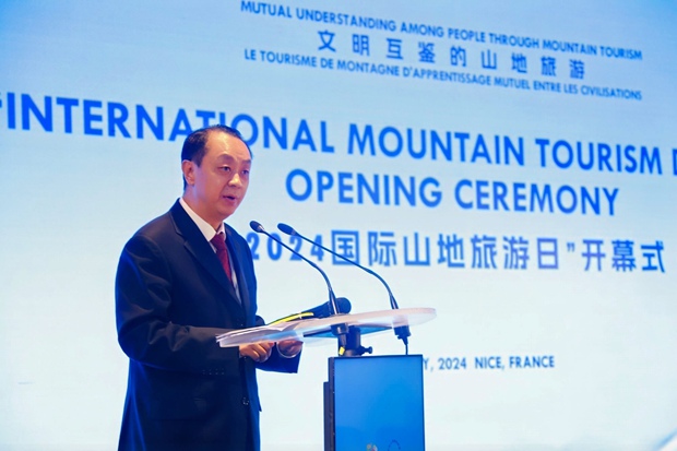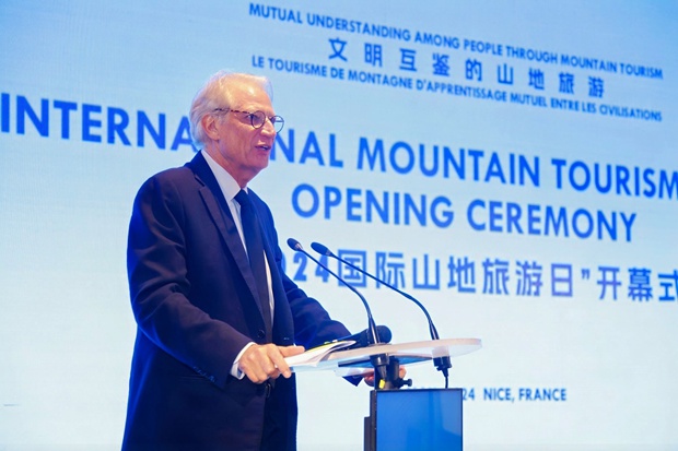 “山地旅游融观光度假、健身娱乐、攀登探险、人文教育等为一体,是一种生态文明旅游形式和提升人民幸福度的生活方式。今天山地旅游界、联盟会员和山地旅游爱好者们济济一堂,相信你们在山地旅游与美好生活关系方面深入研讨交流,碰撞出新的火花,让生态文明造福人类,引领山地旅游走向光辉未来。”中国驻马赛总领事董广利表示,古语“仁者乐山,智者乐水”,充分反映了中国人的生活与山地的关系,中法两国人民对山地充满同样的热爱,今年两国人文交流的“双向奔赴”,将给两国人民带来了福祉,也为动荡不安的世界注入了稳定性和正能量,中国愿同包括法国在内的世界各国一道,在相互尊重的基础上发展友好合作关系,携手前行、共担风雨、共创未来。