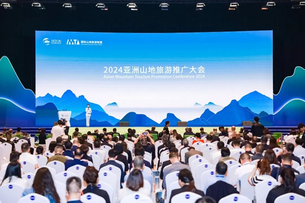 2024国际山地旅游暨户外运动大会开幕式后,大会现场还联动举办了2024亚洲山地旅游推广大会。该大会是在文化和旅游部“亚洲旅游促进计划”背景下举办的第三届大会,今年的主题为“文明互鉴、合作共融——携手奔赴亚洲山地旅游新旅程”。