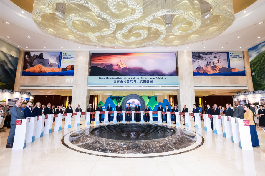 嘉宾为“2024世界山地自然与人文摄影展”剪彩