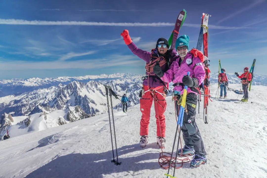 国际山地旅游联盟中法登山队携联盟旗帜登顶勃朗峰