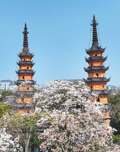 在江苏省苏州市定慧寺巷,白玉兰花盛放。王建中摄(人民图片)